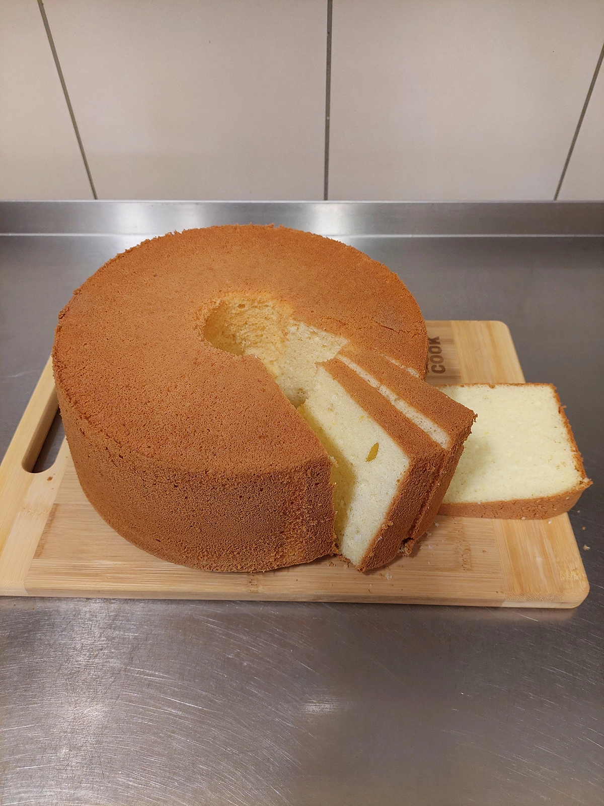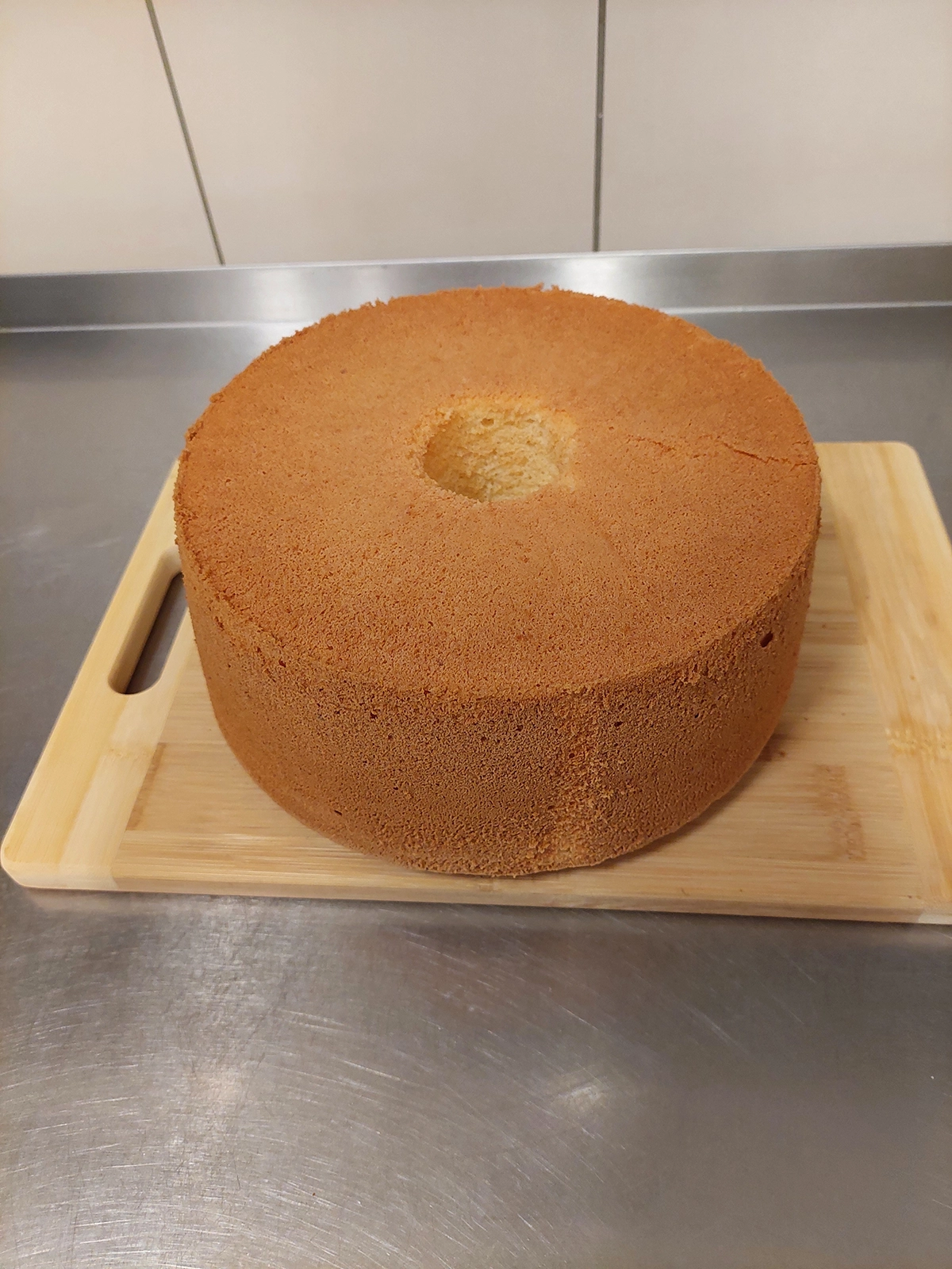 Upieczoną, jeszcze gorącą babkę wyjmujemy z piekarnika, przewracamy do góry i wieszamy na butelce lub słoiku. W takiej pozycji pozostawiamy babkę do całkowitego wystygnięcia, najlepiej do następnego dnia. Wystudzoną babkę wiszącą odwracamy. Formę luzujemy. Wyciągamy ciasto (możemy pomóc sobie nożykiem, żeby odkleić ciasto od brzegów).