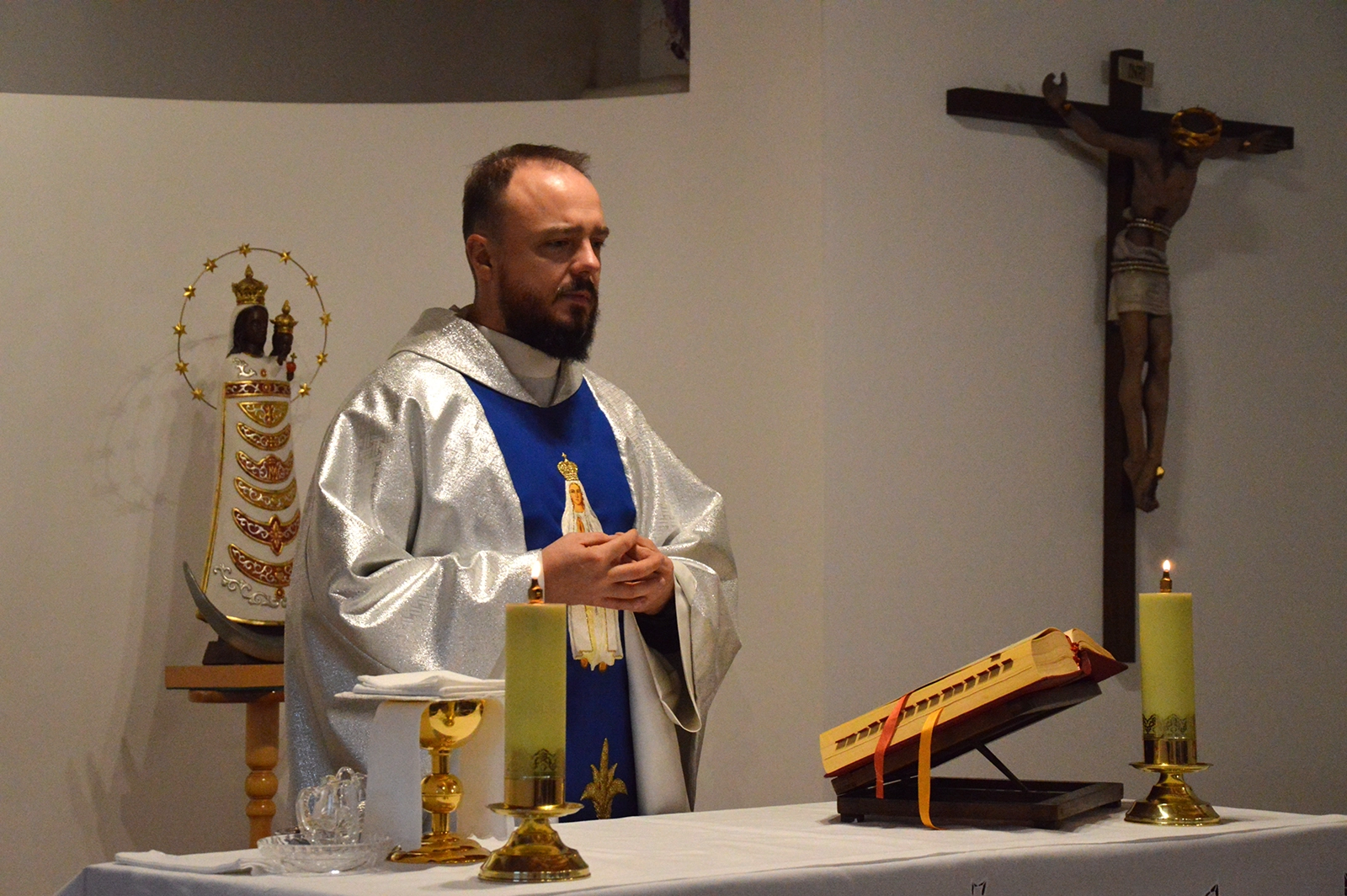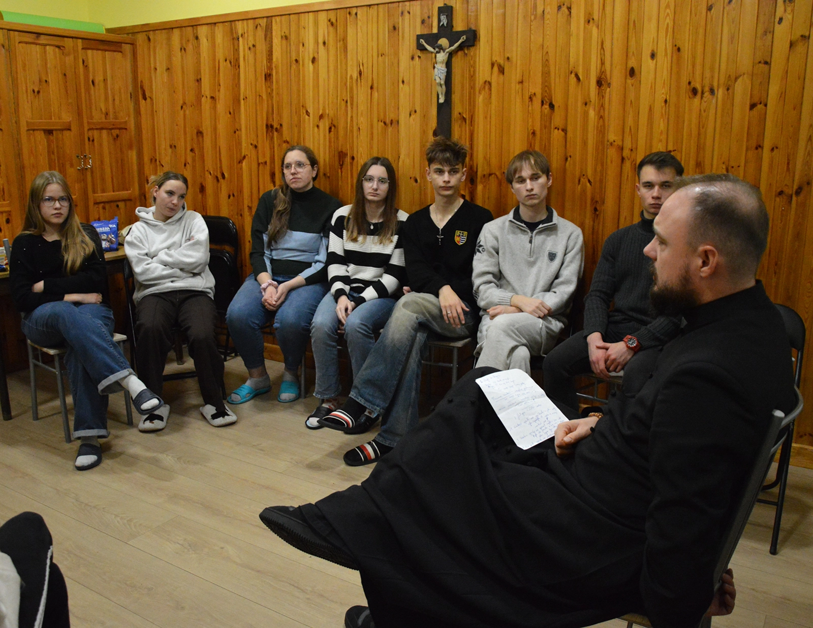 Po wspólnej kolacji rozpoczęliśmy spotkanie zapoznawcze: dzieliliśmy się tym, skąd jesteśmy, czym się zajmujemy i jak trafiliśmy na rekolekcje. Podczas pierwszej konferencji ks. Radek wprowadził nas w temat samoakceptacji – wyjaśniając, czym ona naprawdę jest i jak głęboko dotyka każdego z nas. Już pierwsze ćwiczenia pokazały, że zmaganie z akceptacją siebie jest doświadczeniem powszechnym. Wieczór zakończyliśmy adoracją, powierzając Panu czas, który był przed nami.