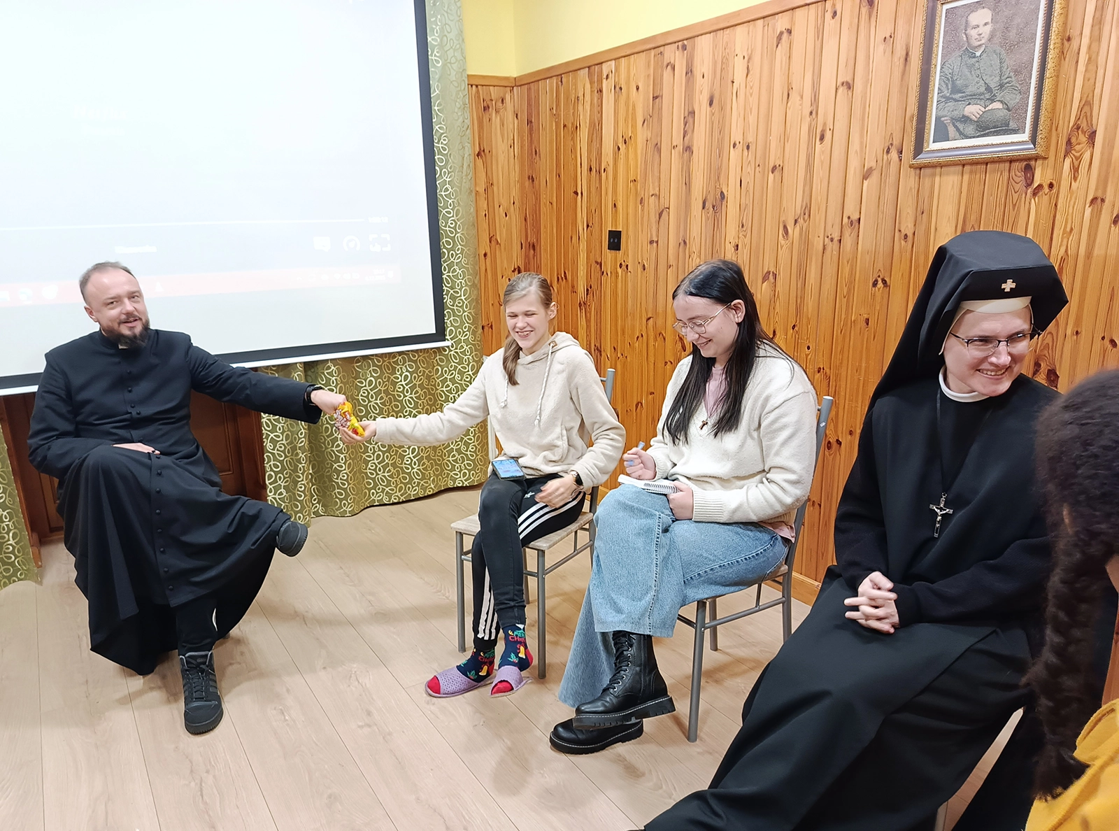 Był czas na adorację, wspólną modlitwę Litanią loretańską, Koronkę do Bożego Miłosierdzia oraz Nieszpory z Siostrami Loretankami w Sanktuarium. Nie zabrakło też kawy, rozmów indywidualnych z księdzem i siostrami: Wiolettą i Gemmą oraz wspólnego filmu nawiązującego do tematu rekolekcji.