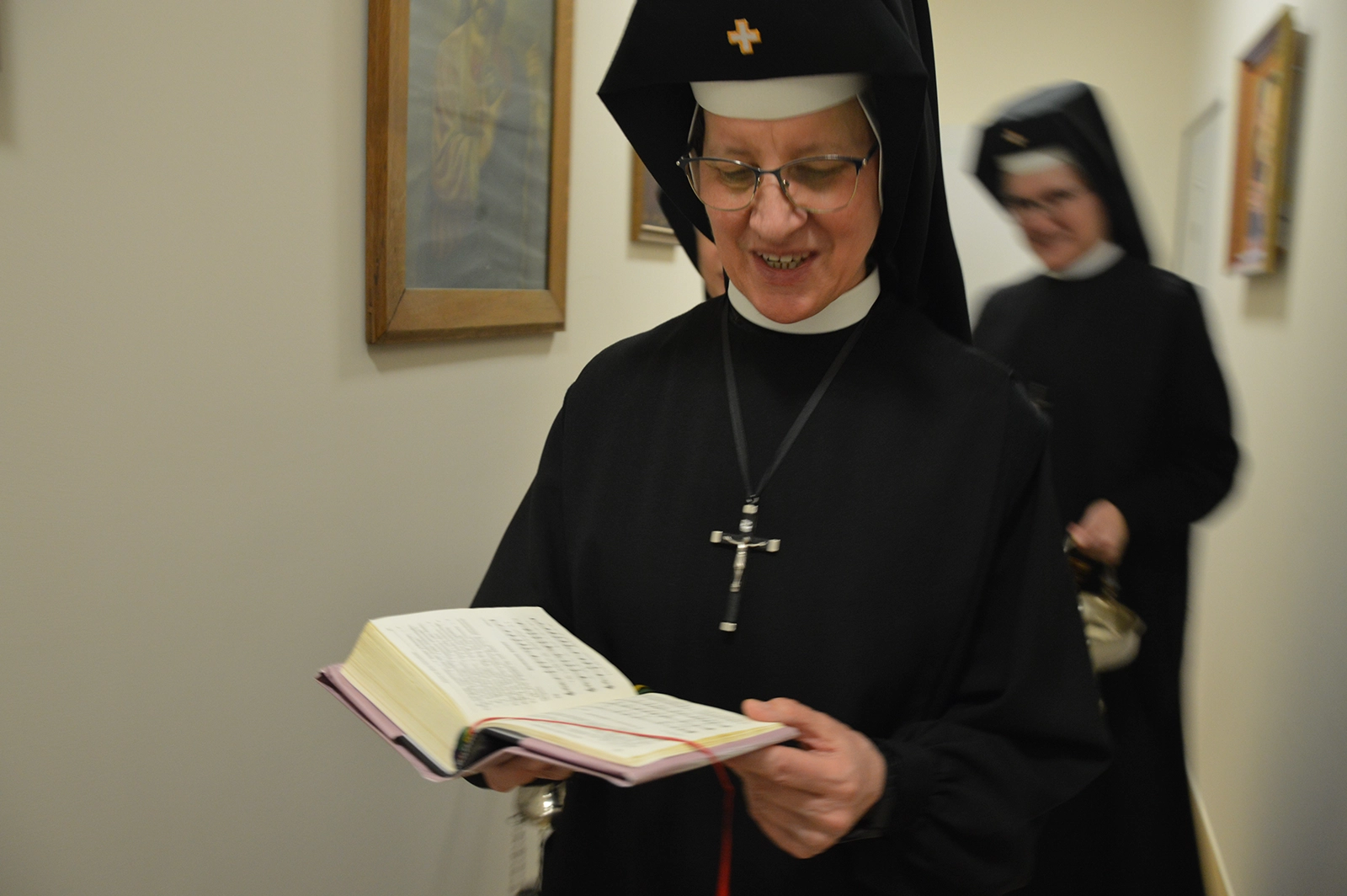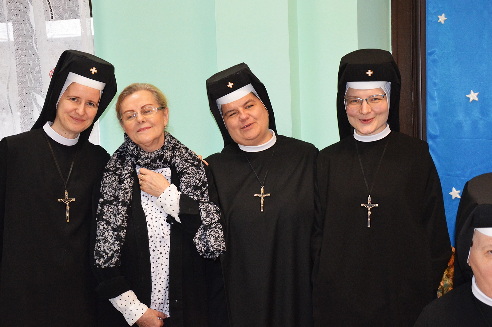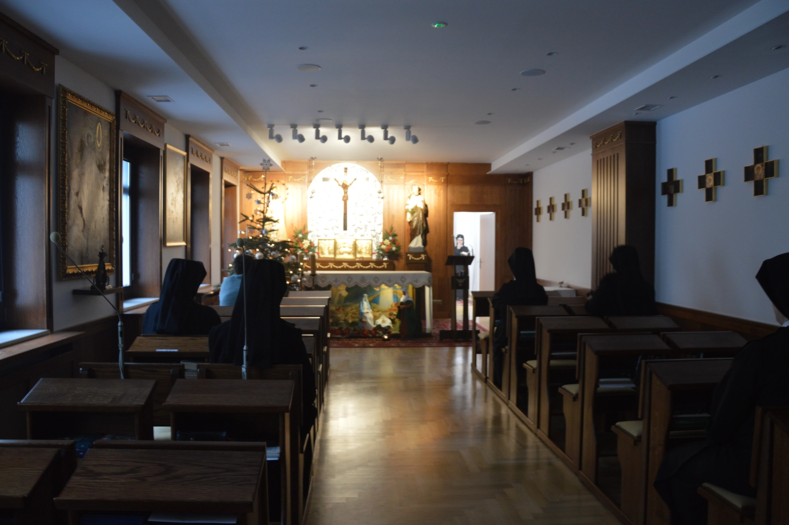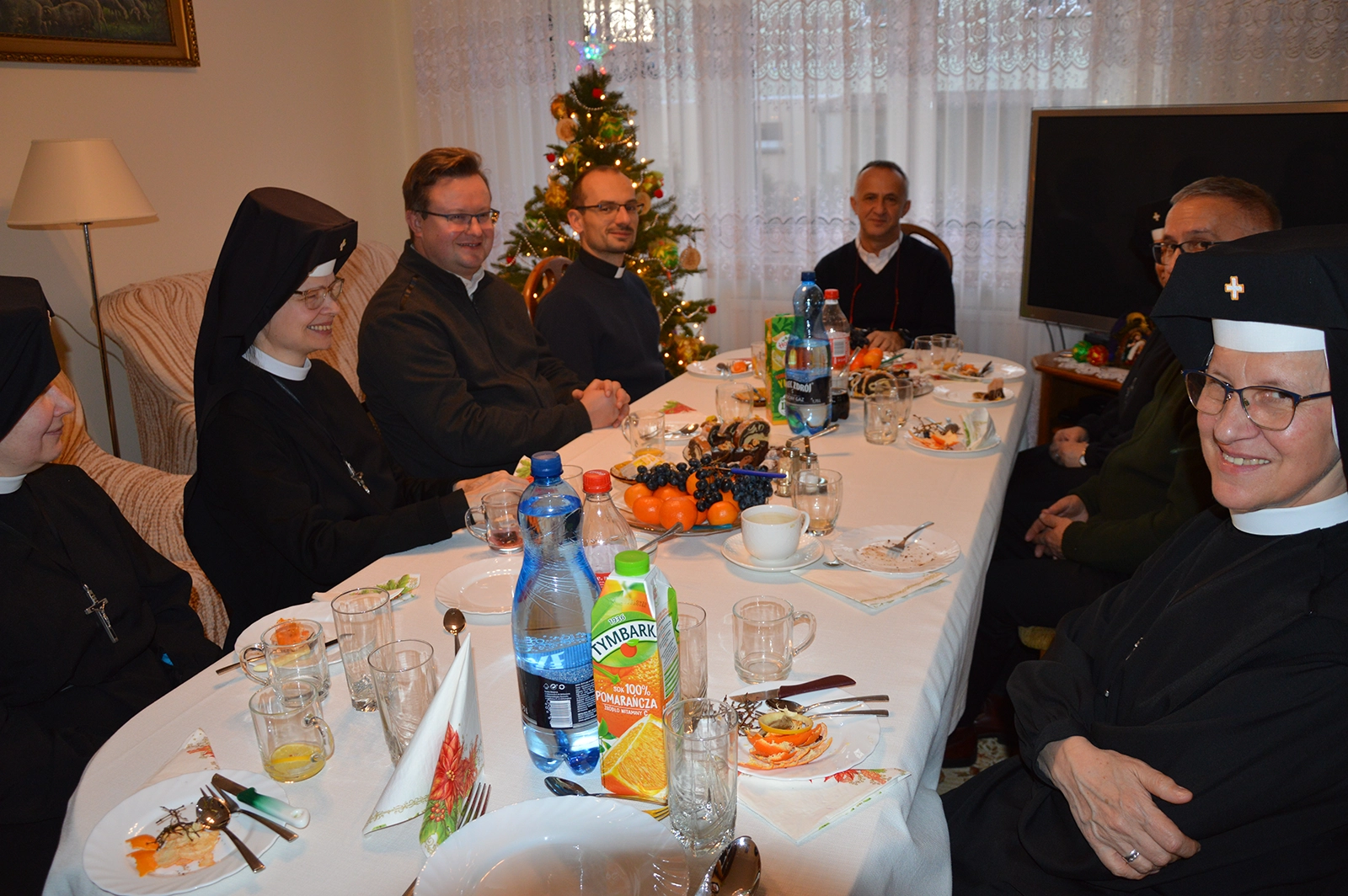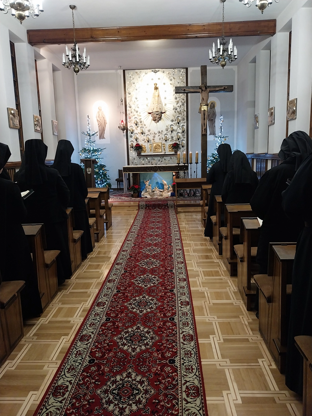 Wszystko wśród śpiewanych kolęd. Wyruszamy dość szybkim krokiem do kolejnych pomieszczeń klasztornych. Kolędy raz śpiewane głośniej, to niespodziewanie kilka sióstr odłączyło się od śpiewu, aby zamienić słowo, zażartować i jedna drugą chce rozśmieszyć. Udało się; wszystkie wybuchnęły śmiechem, ale idźmy dalej, ponieważ jest kilka, których pragnie, aby dalej śpiewać jeszcze głośniej, jeszcze bardziej sercem. Dobrze wiedzą, że to dopiero początek i jeszcze nie raz się roześmiejemy, ale wszystko po to, aby Bóg był uwielbiony w radości oraz cierpieniu. Jesteśmy razem dla Boga przez Maryję.