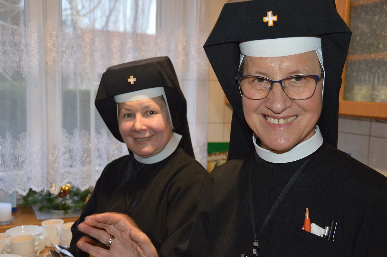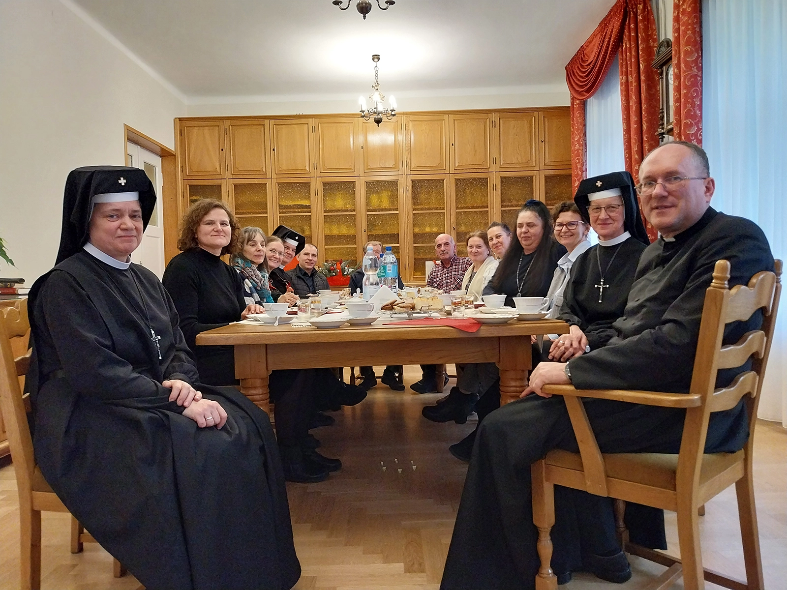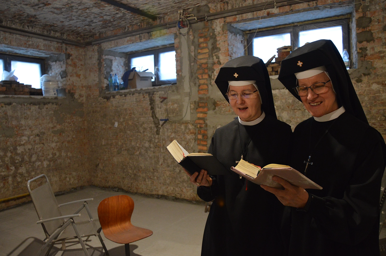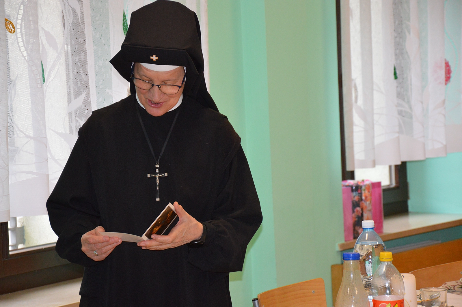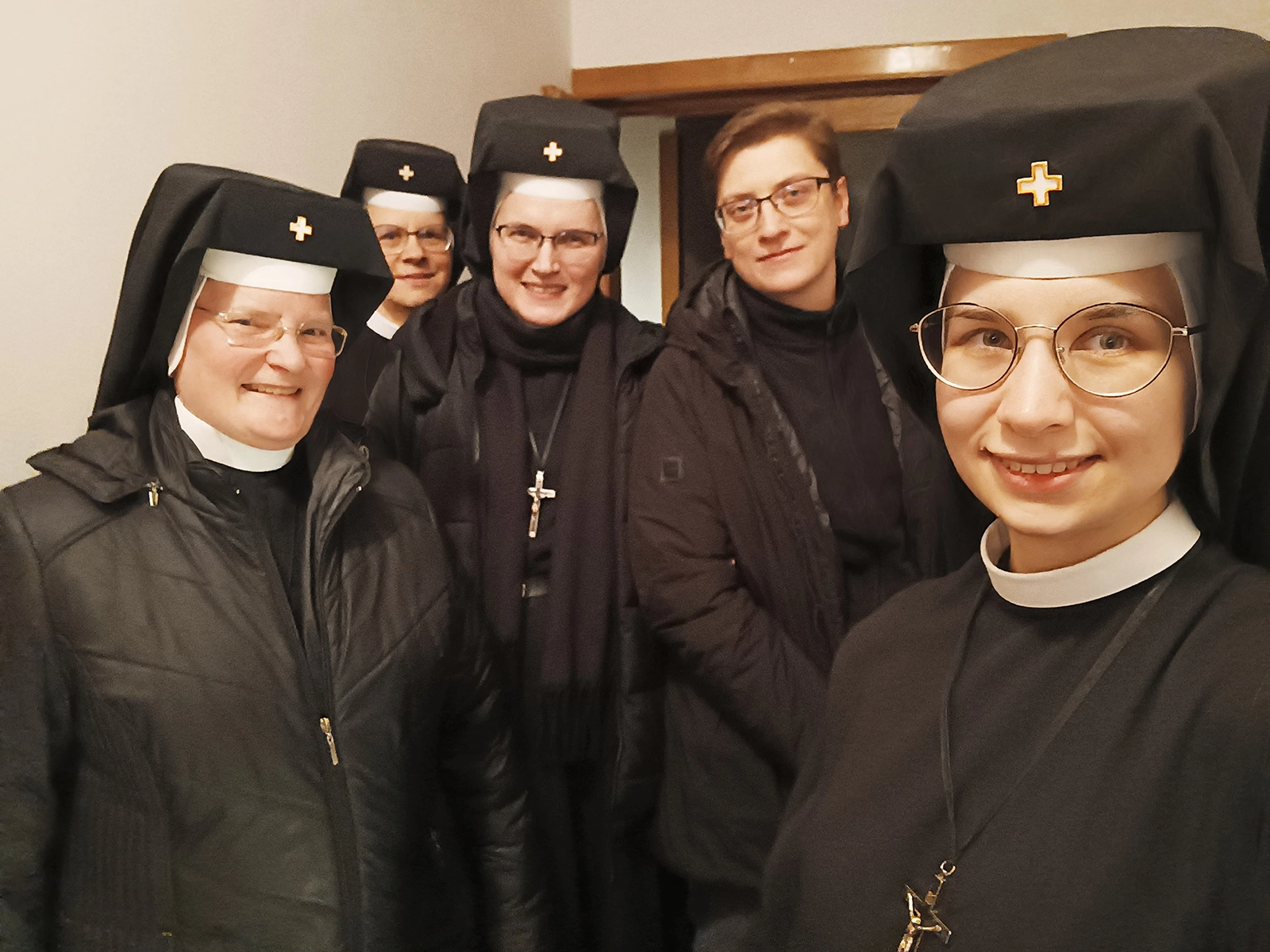 Wszystko wśród śpiewanych kolęd. Wyruszamy dość szybkim krokiem do kolejnych pomieszczeń klasztornych. Kolędy raz śpiewane głośniej, to niespodziewanie kilka sióstr odłączyło się od śpiewu, aby zamienić słowo, zażartować i jedna drugą chce rozśmieszyć. Udało się; wszystkie wybuchnęły śmiechem, ale idźmy dalej, ponieważ jest kilka, których pragnie, aby dalej śpiewać jeszcze głośniej, jeszcze bardziej sercem. Dobrze wiedzą, że to dopiero początek i jeszcze nie raz się roześmiejemy, ale wszystko po to, aby Bóg był uwielbiony w radości oraz cierpieniu. Jesteśmy razem dla Boga przez Maryję.