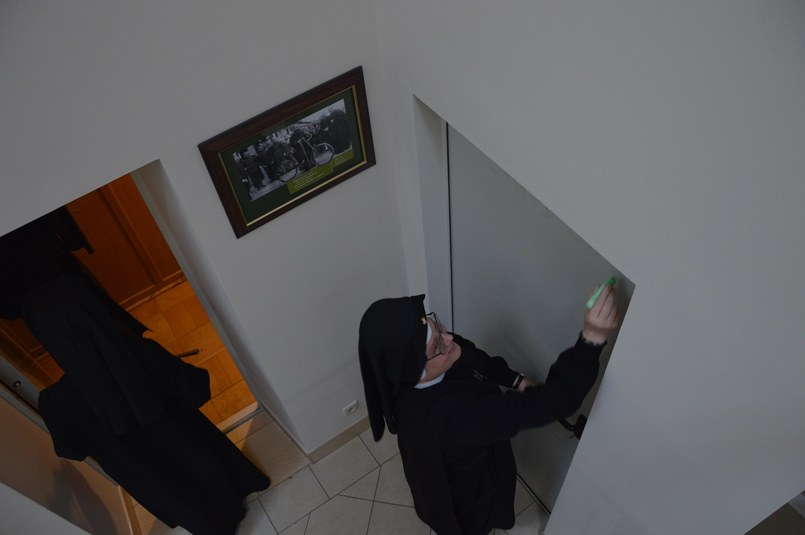 Idźmy dalej do naszych pokoi, do pokoi gościnnych, do kuchni i zapleczy, przez długie korytarze i klatki schodowe do pralni, do miejsc naszej pracy, do świetlicy, do drukarni, introligatorni, montażu, komputerowni, redakcji, biura, droga długa, jeszcze sale rekreacyjne dla sióstr i miejsca, gdzie są wygłaszane konferencje, gdzie spotykają się grupy rekolekcyjne, do garaży, magazynów… A z żarzących się węgli zasypywanych kadzidłem i rozsyłanego trybularza unosi się wonny dym, który przypomina o tajemnicy, o spalającej się miłości do Boga.