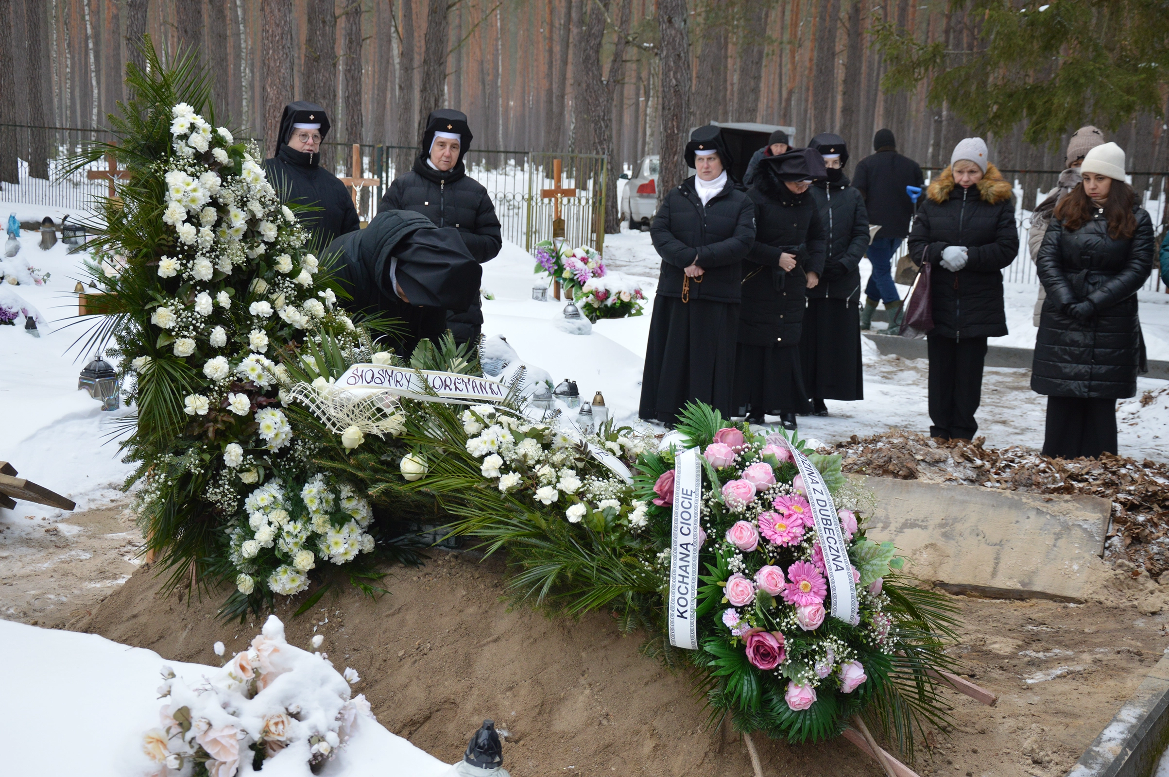 Msza Święta pogrzebowa za śp. siostrę Edytę została odprawiona 24 stycznia, po Godzinie czytań i modlitwie różańcowej, w kaplicy bł. Ignacego Kłopotowskiego w Warszawie-Rembertowie. Eucharystii przewodniczył ksiądz prałat Mateusz Matuszewski, kapelan tamtejszej wspólnoty. W koncelebrze uczestniczyli: ojciec Ryszard Bożek CSsR, prowadzący w tym czasie rekolekcje dla sióstr, a także spowiednicy – ksiądz Henryk Bąkowski SDB oraz ksiądz Jerzy Grzyb CM. Po zakończeniu Mszy Świętej ciało Zmarłej zostało przewiezione na cmentarz własny do Loretto. Procesji na cmentarz oraz obrzędom końcowym pogrzebu przewodniczył ojciec Ireneusz Matysiak SSCC, duszpasterz i kapelan z Loreto. Uroczystości pogrzebowe miały charakter bardzo pogodny, naznaczony chrześcijańską nadzieją i radością płynącą z wiary w zmartwychwstanie. W pożegnaniu siostry Edyty uczestniczyła także jej rodzina oraz najbliżsi.