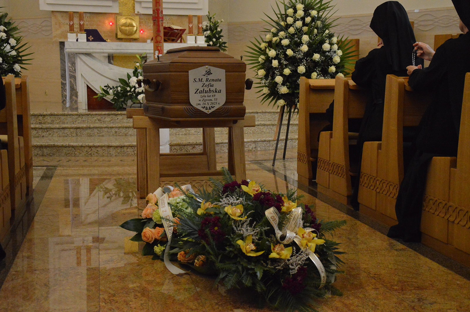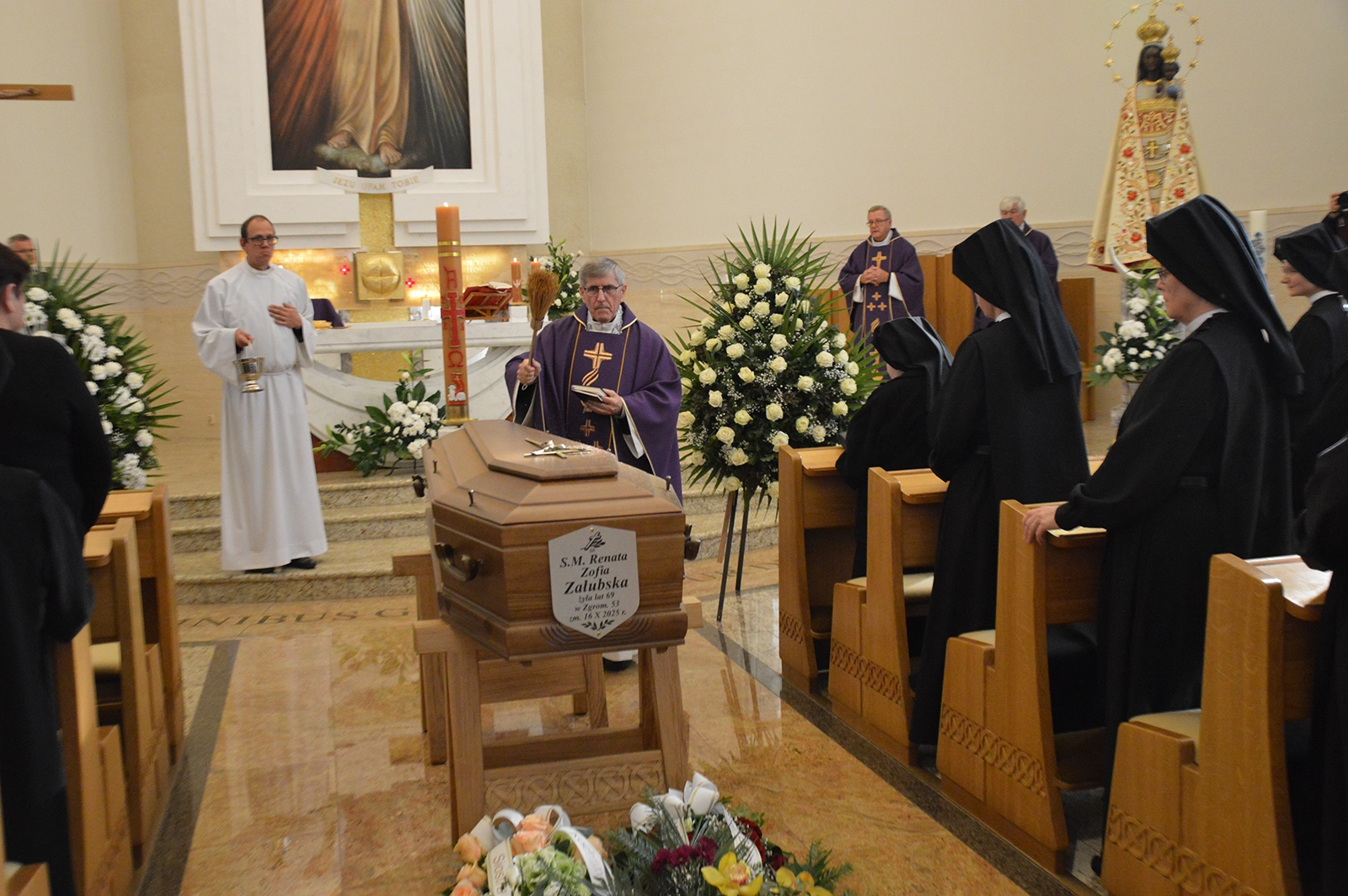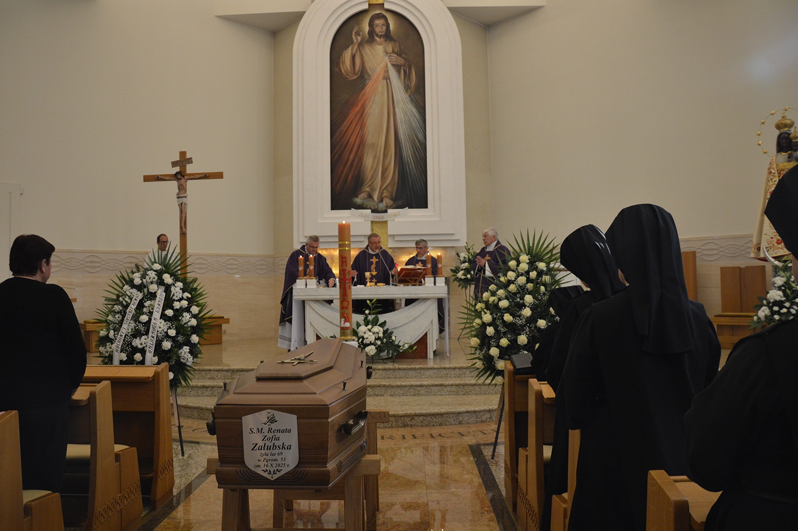 Mszy Świętej pogrzebowej odprawionej 21 października 2025 r. w kaplicy zakonnej bł. ks. Ignacego Kłopotowskiego przewodniczył ks. Czesław Załubski, brat s. Renaty z Ameryki, w asyście: ks. Henryka Bonkowski SDB, wieloletniego spowiednika, ks. Jerzego Grzyba OMI i ks. prałata Kazimierza Siekierko z Drohiczyna. Procesji na cmentarz własny w Loretto i pogrzebaniu ciała przewodniczył o ks. Henryk Bonkowski SDB.