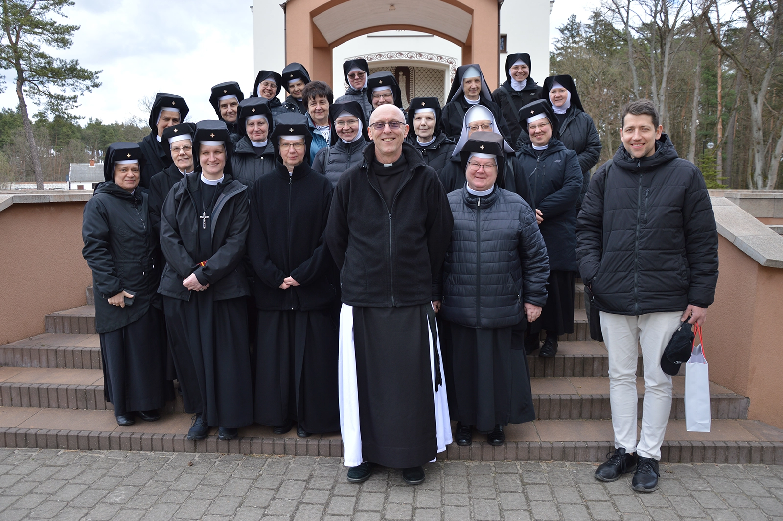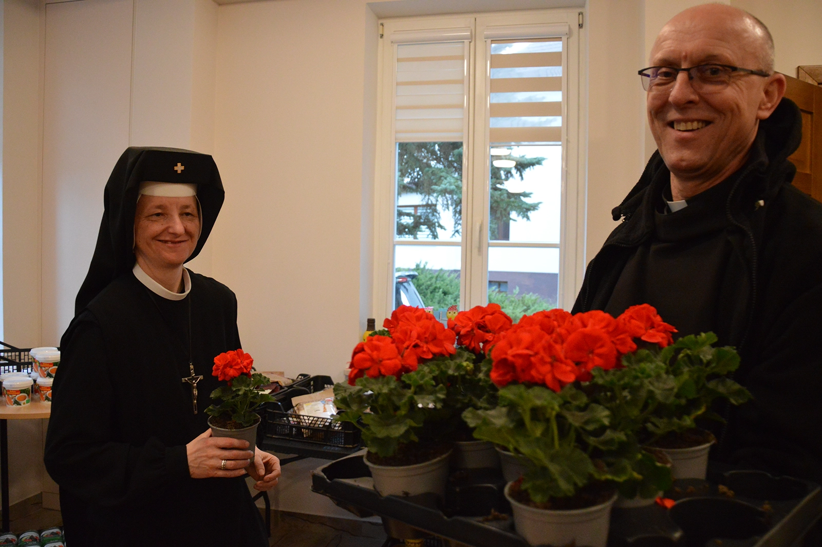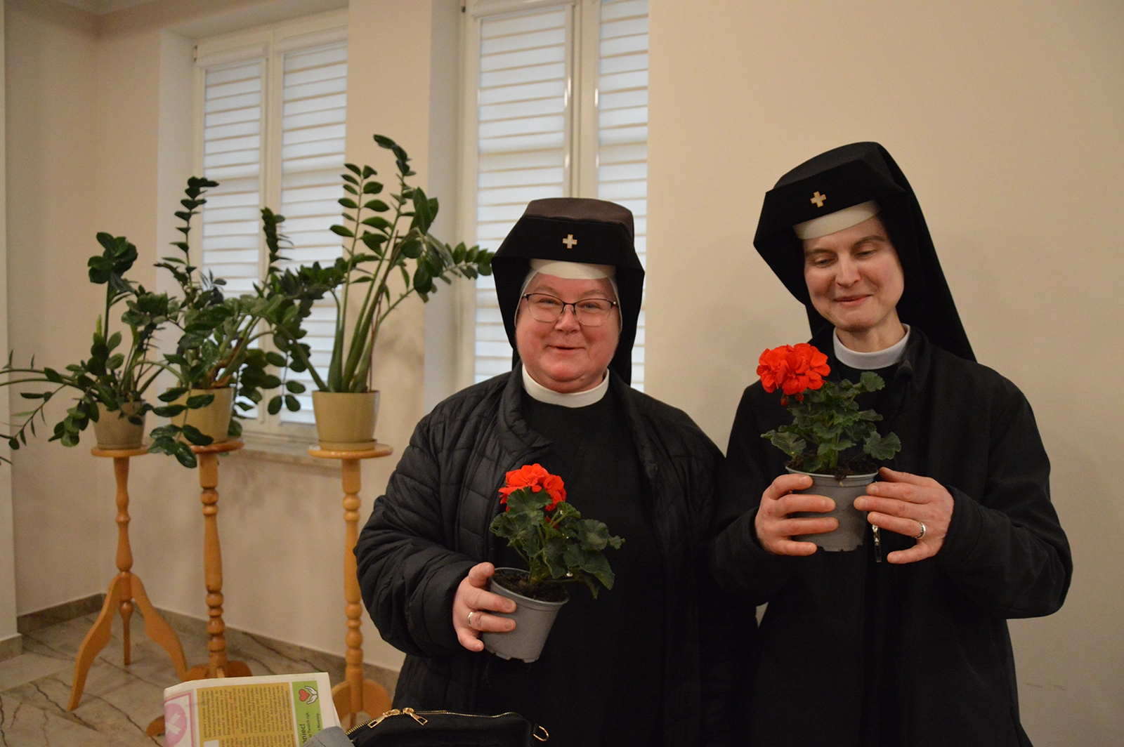 O godz. 15.00 Koronka do Bożego Miłosierdzia i Eucharystia, której przewodniczył o. Rajmund Guzik OCist. Po Mszy świętej powróciłyśmy do sali nowicjatu, gdzie mogłyśmy nabyć zdrowe produkty i jeszcze spotkać się przy kawie i ciastku oraz doświadczyłyśmy wielu niespodzianek od o. Rajmunda.