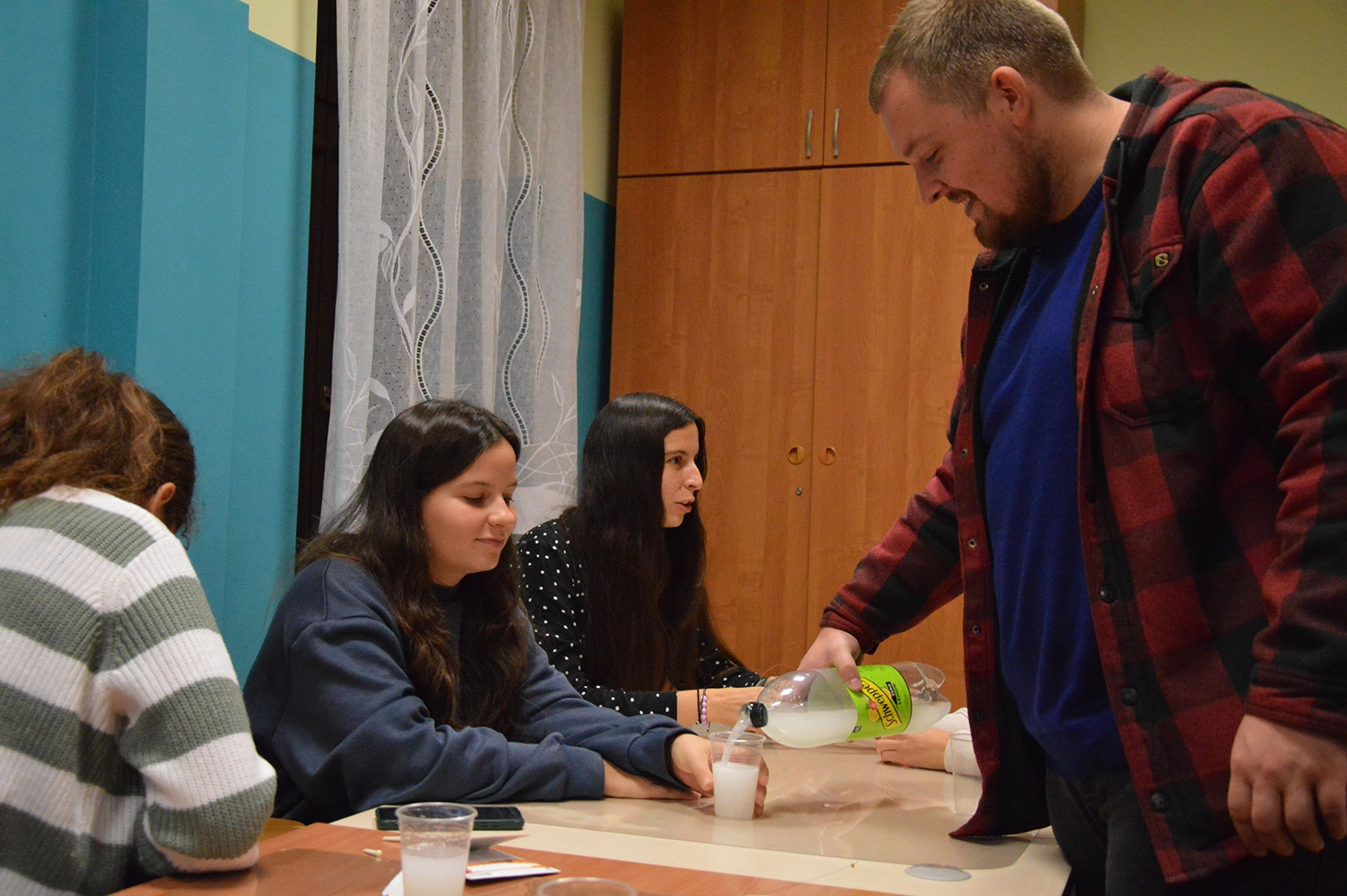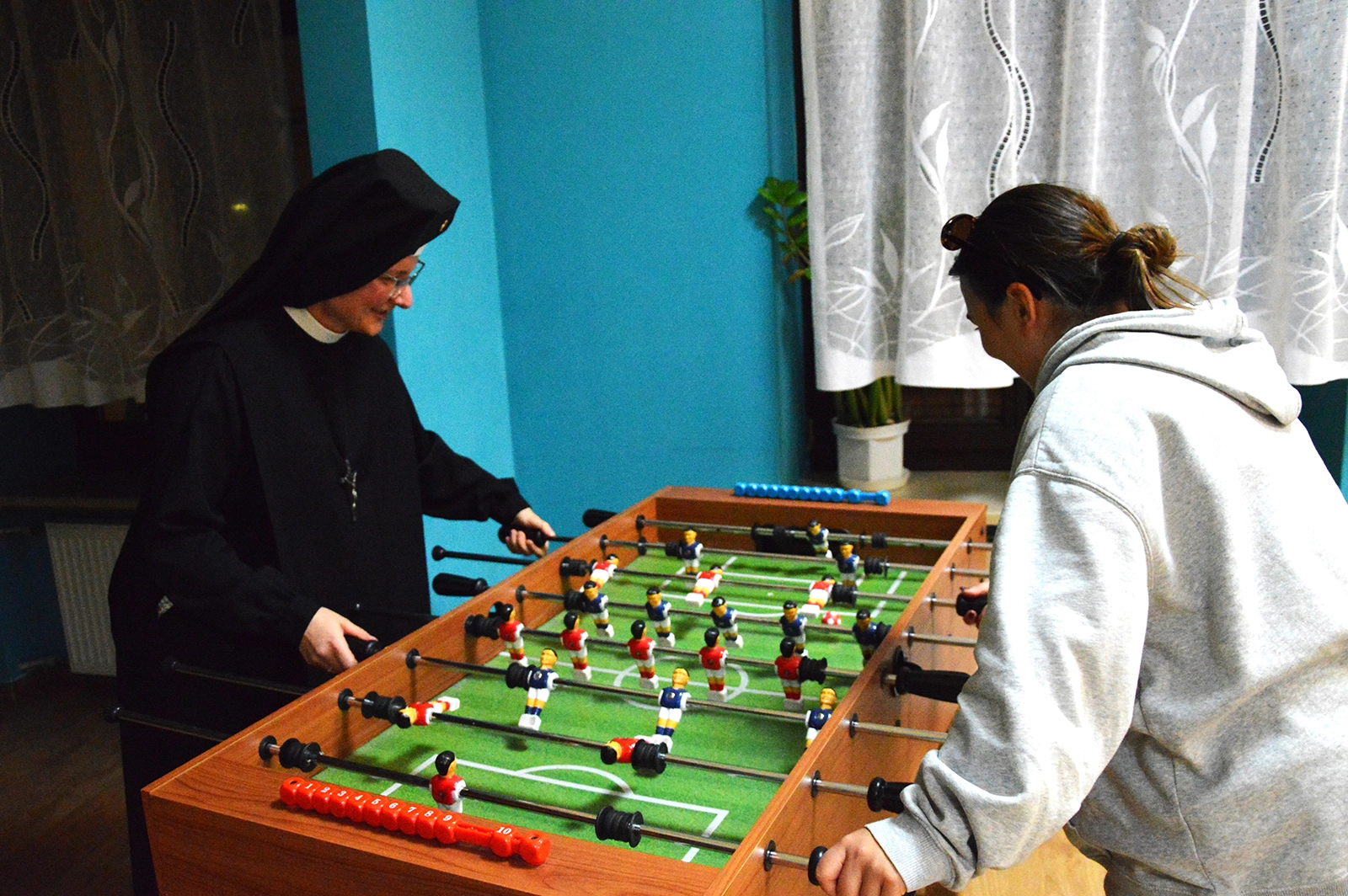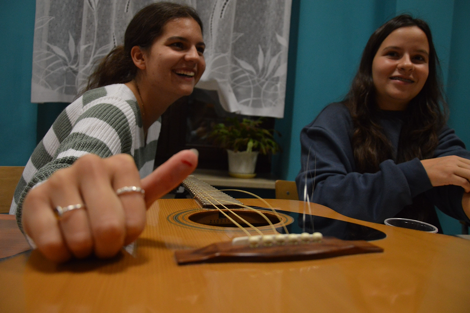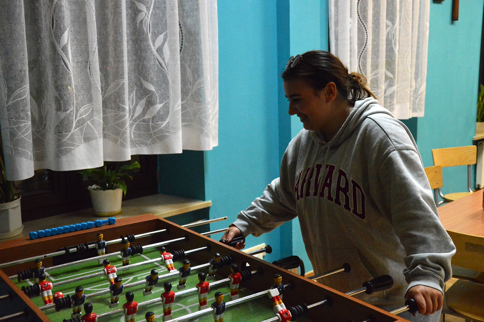Później przyszedł czas na rozmowy i wspólne bycie razem po wakacyjnej przerwie. Dzieliliśmy się tym, co wydarzyło się w naszym życiu, co się zmieniło i co dziś jest dla nas ważne. Nie zabrakło radości – graliśmy w piłkarzyki, wymienialiśmy struny w gitarze i zajadaliśmy się pysznymi ciastkami. Do naszej wspólnoty dołączyły też nowe osoby, które z radością przyjęliśmy w nasze grono. To był piękny czas – pełen modlitwy, radości, rozmów i wspólnoty. Każde spotkanie przypomina nam, że wiara to nie tylko słowa, lecz żywa relacja z Jezusem, której uczymy się razem z Maryją.