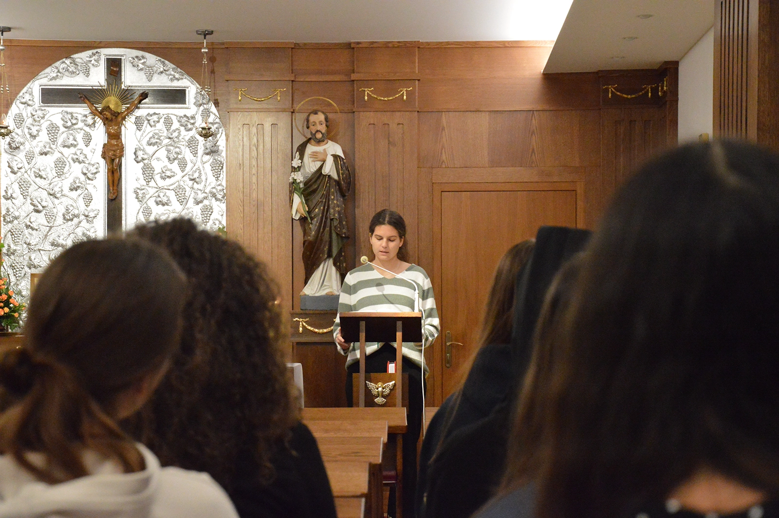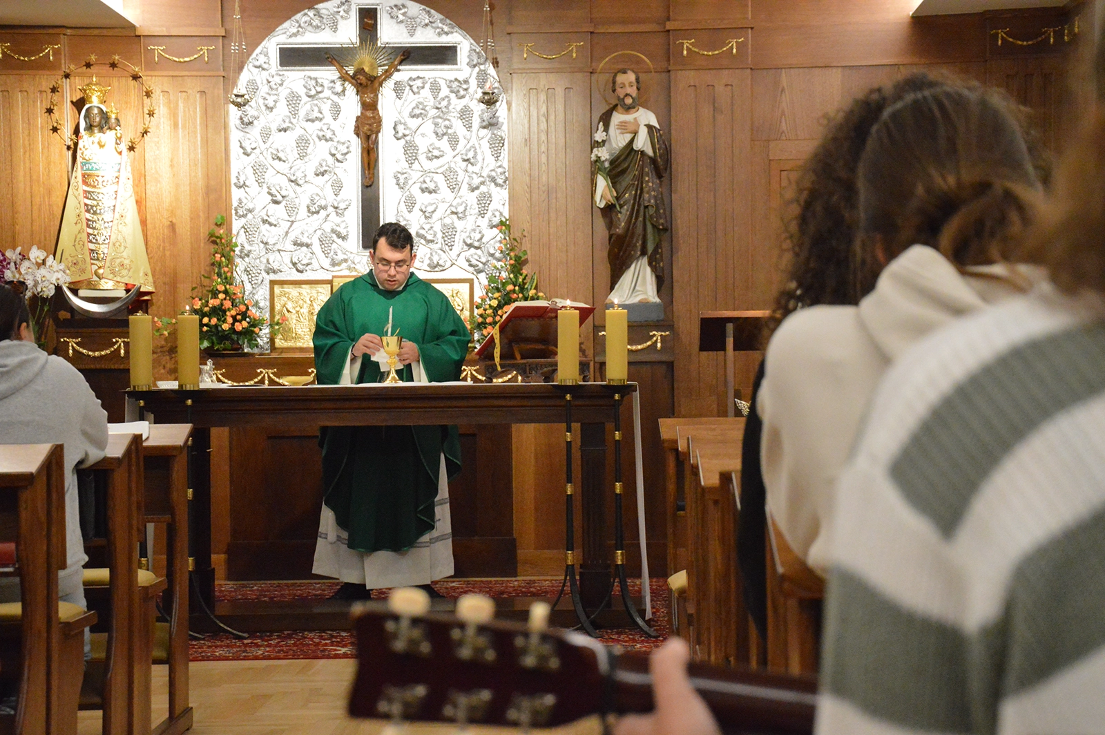 Nasze pierwsze spotkanie rozpoczęło się Mszą Świętą, której przewodniczył ks. Rafał Orzechowski. W homilii kapłan zachęcał, by w naszym życiu nie było rozdźwięku między tym, kim jesteśmy przed Jezusem, a tym, jak postrzegają nas inni – rodzice, przyjaciele czy my sami. Podkreślił, że nie możemy być „rozdwojeni”, ponieważ Jezus pragnie naszej jedności, mówiąc: „Bądź jednym, jak Jednym jest Bóg”.
